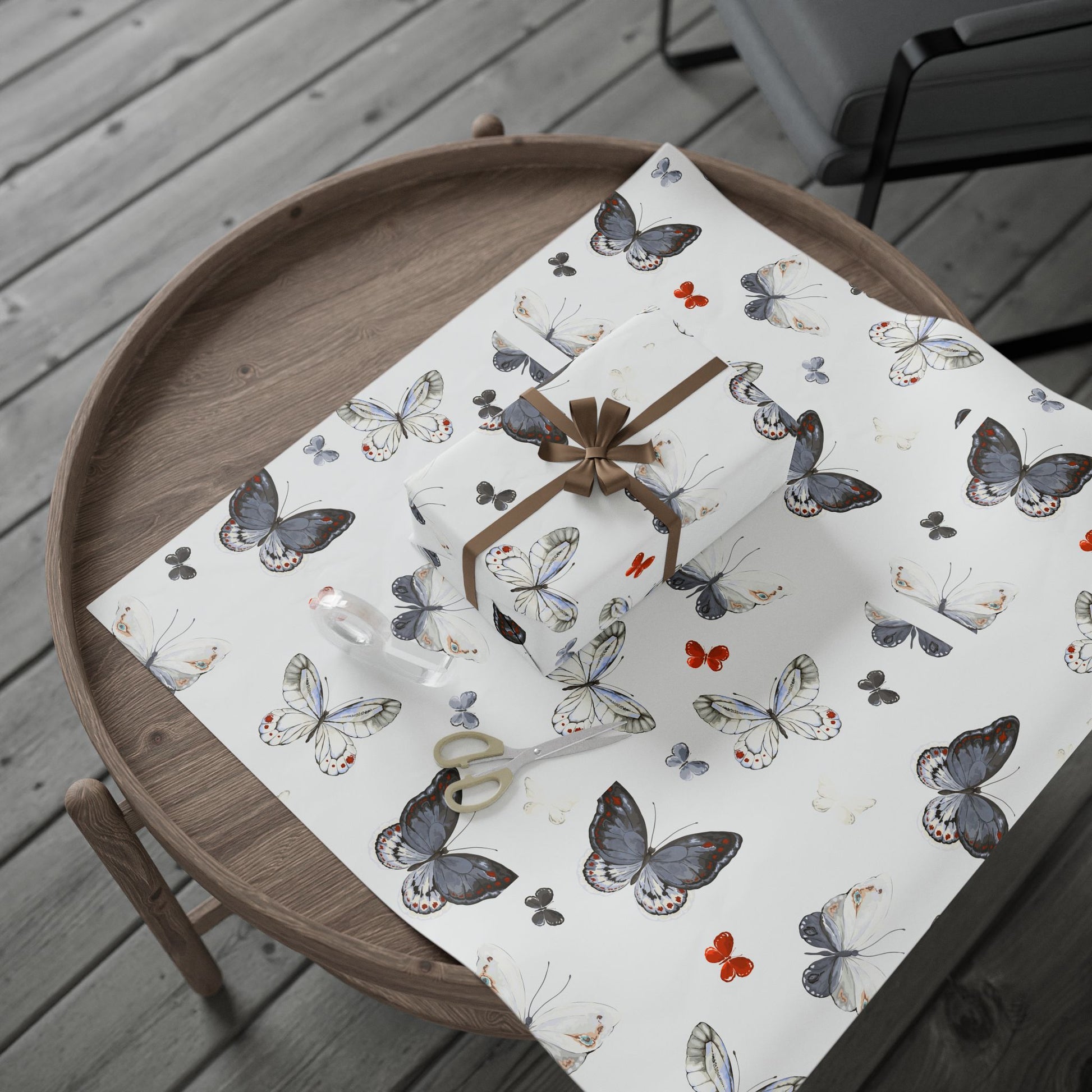 The Butterfly Pattern Wrapping Paper Roll by NEROLUX DESIGN captures the grace of delicate watercolor butterflies in soft, artistic tones — perfect for birthdays, anniversaries, weddings, and special moments.